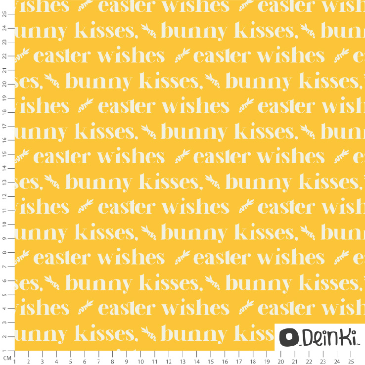 Produktinformationen "Bio Webware Stoff - Easter Wishes Bunny Kisses - Deinki, Ostern, gelb, Buchstaben & Zahlen, 100% Bio-Baumwolle"